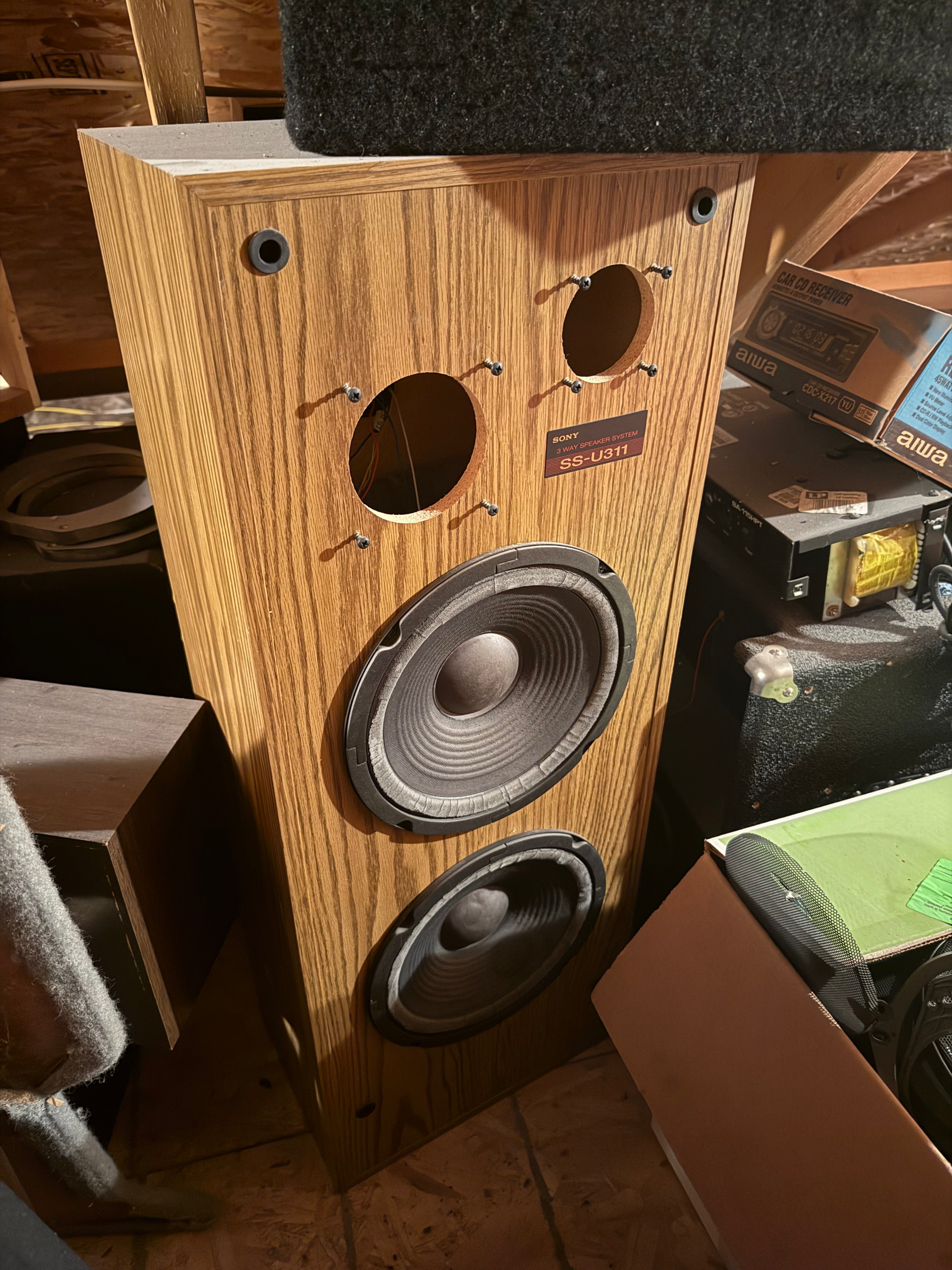 I foresee a fresh matte black baffle and some bracing in some big Sony cabs I have in the attic. Golden Oak vinyl - Quite period correct for a build like this!