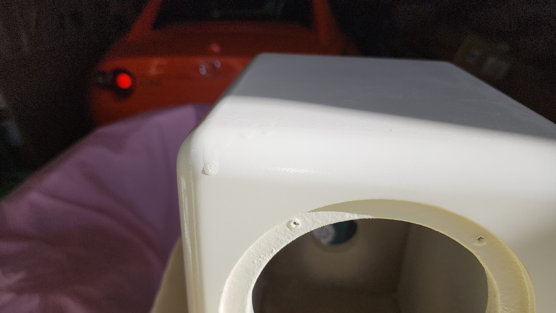 - Smooth out box. My box wasn’t very smooth and was trying to use primer to fill and sand smooth. Glaze putty worked for filling in