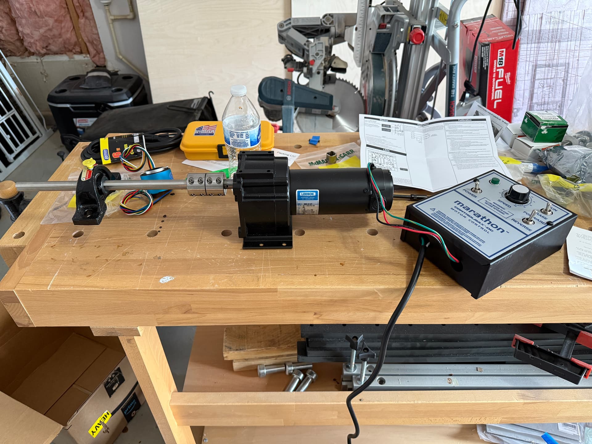 I drew up what I’d need and initially decided that was too silly. There are already some known downsides of this design, why implement something else that would introduce noise, if nothing else? Well I couldn’t let that go either and I ordered some parts for evaluation. DC motor, AC-DC speed controller, bearings, driveshaft, and a slip ring. That’s all in my garage right now waiting to be assembled to see how much noise is generated - both audible noise (from the motor) and electrical noise (induced by the motor and through the slip ring).