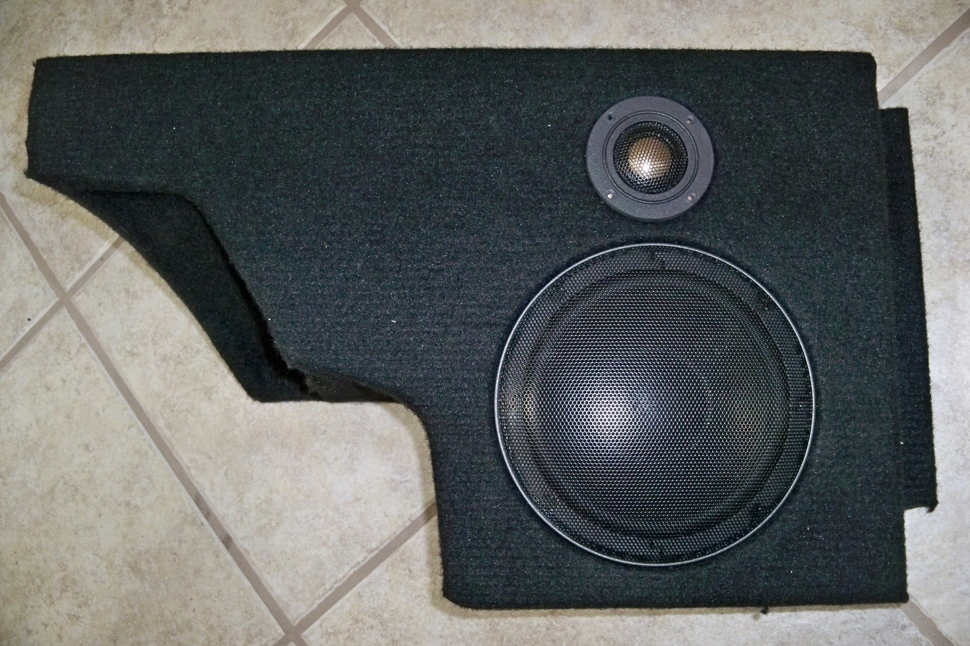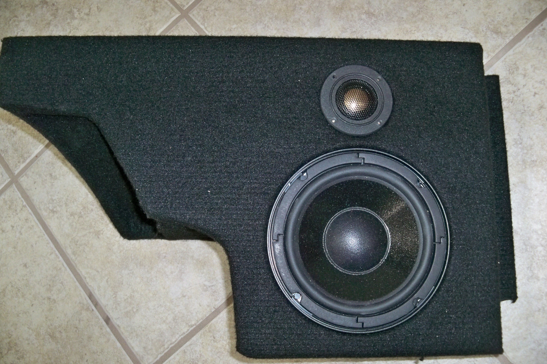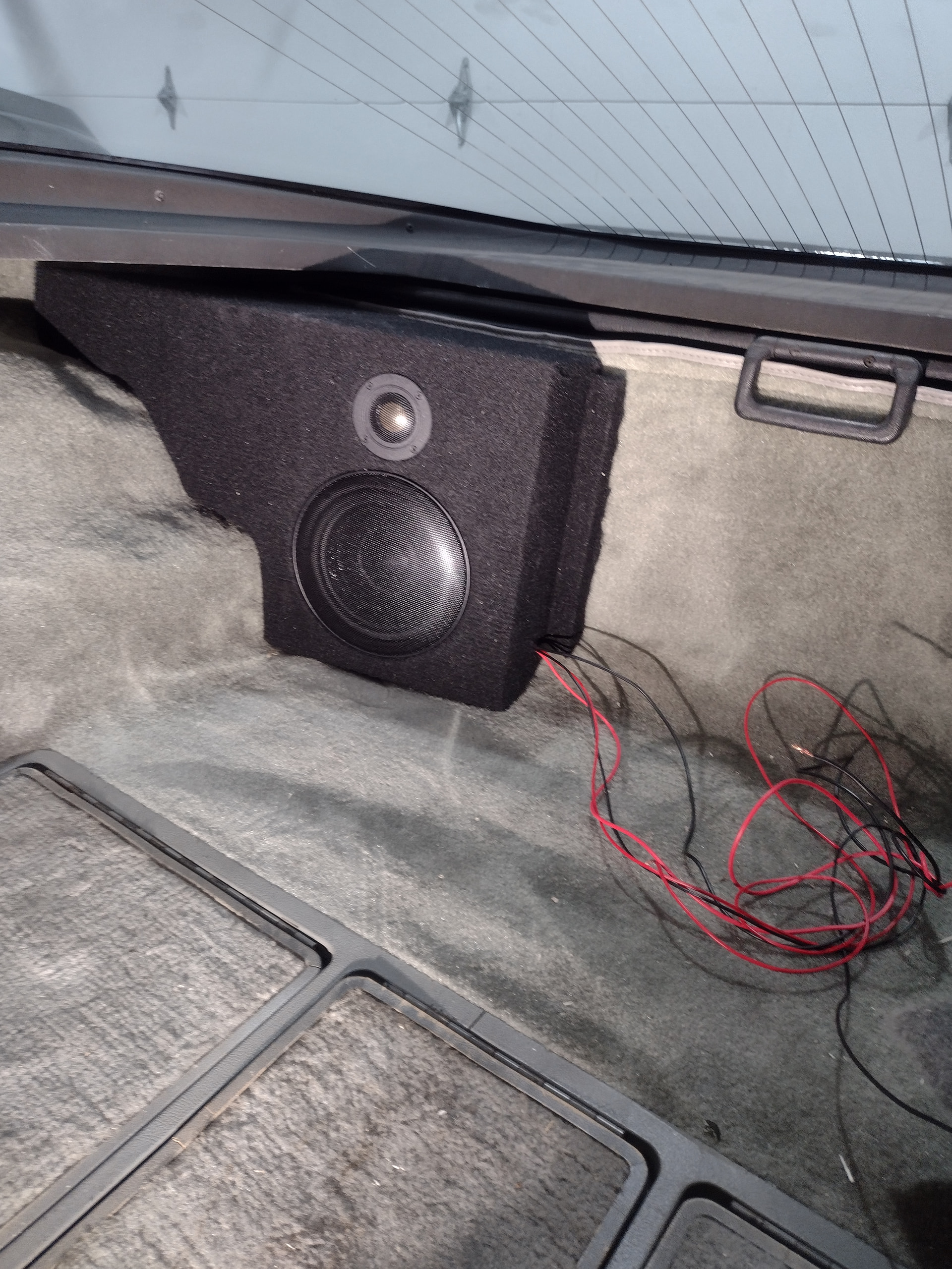 I’ve been slowly working on getting some decent speakers in the old corvette. The stock were 6x9 tucked into the corners open baffle. This is my solution. It uses DC160-4 woofers and MCM tweeter that I believe Craig gave to me.