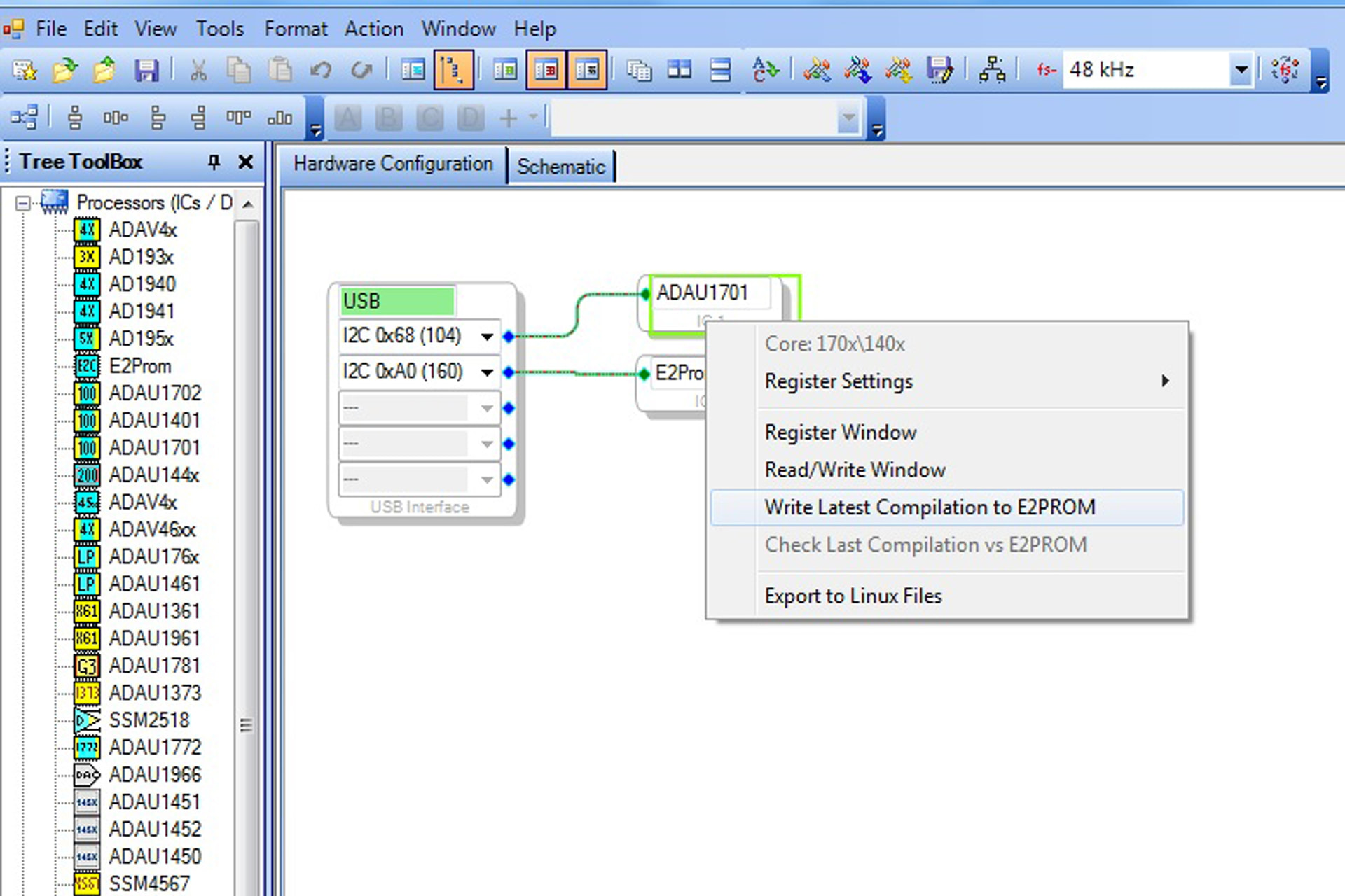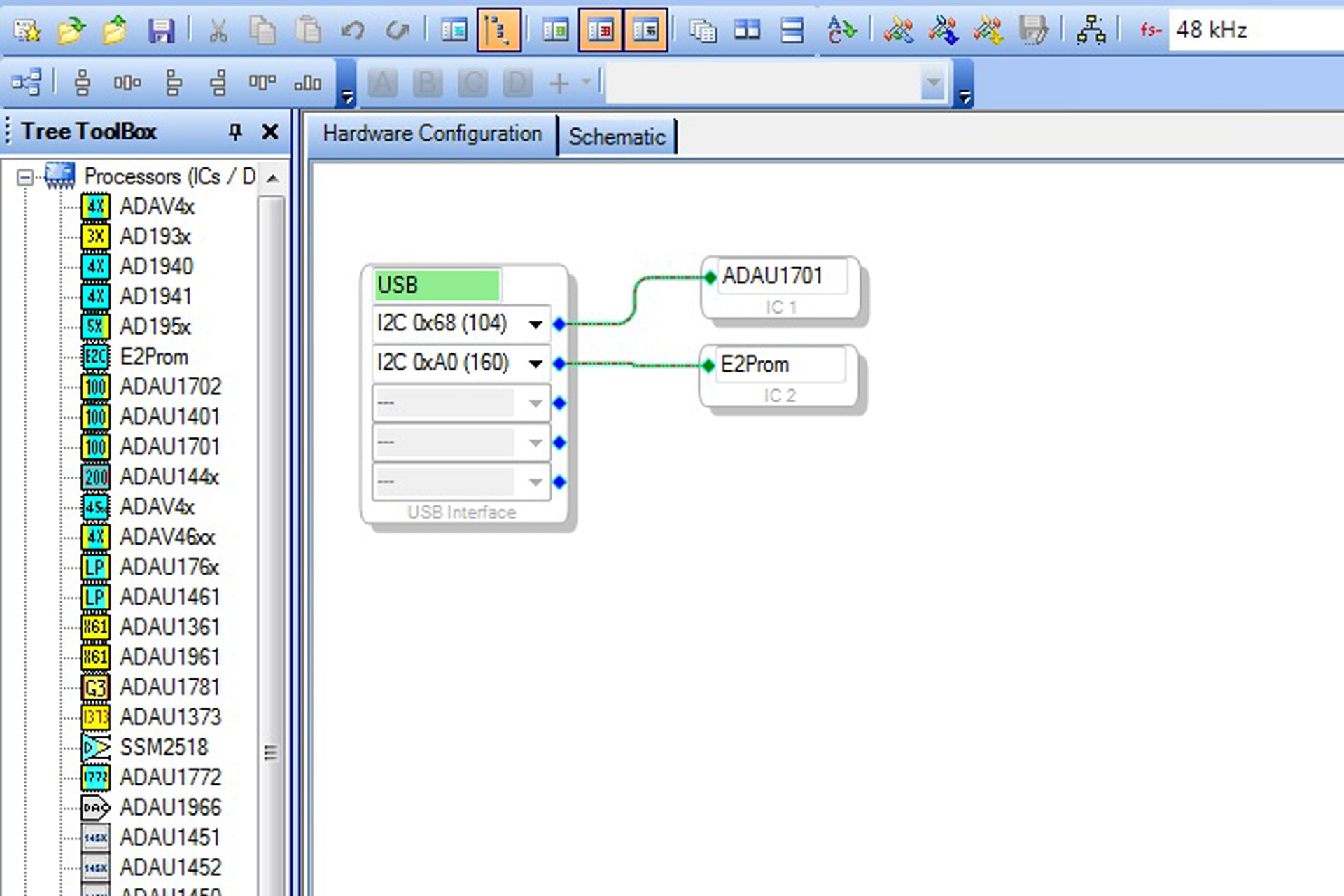 If everything is correct you should see a green USB symbal under the Hardware Configuration tab in SigmaStudio. This indicates the SigmaStudio can communicate with the programmer board.