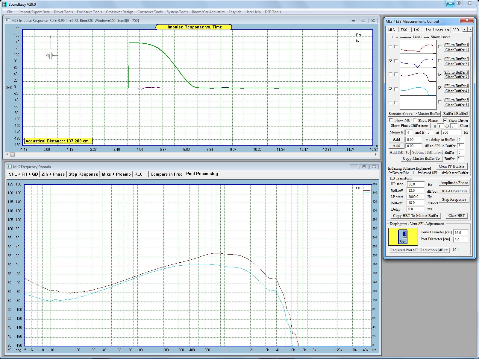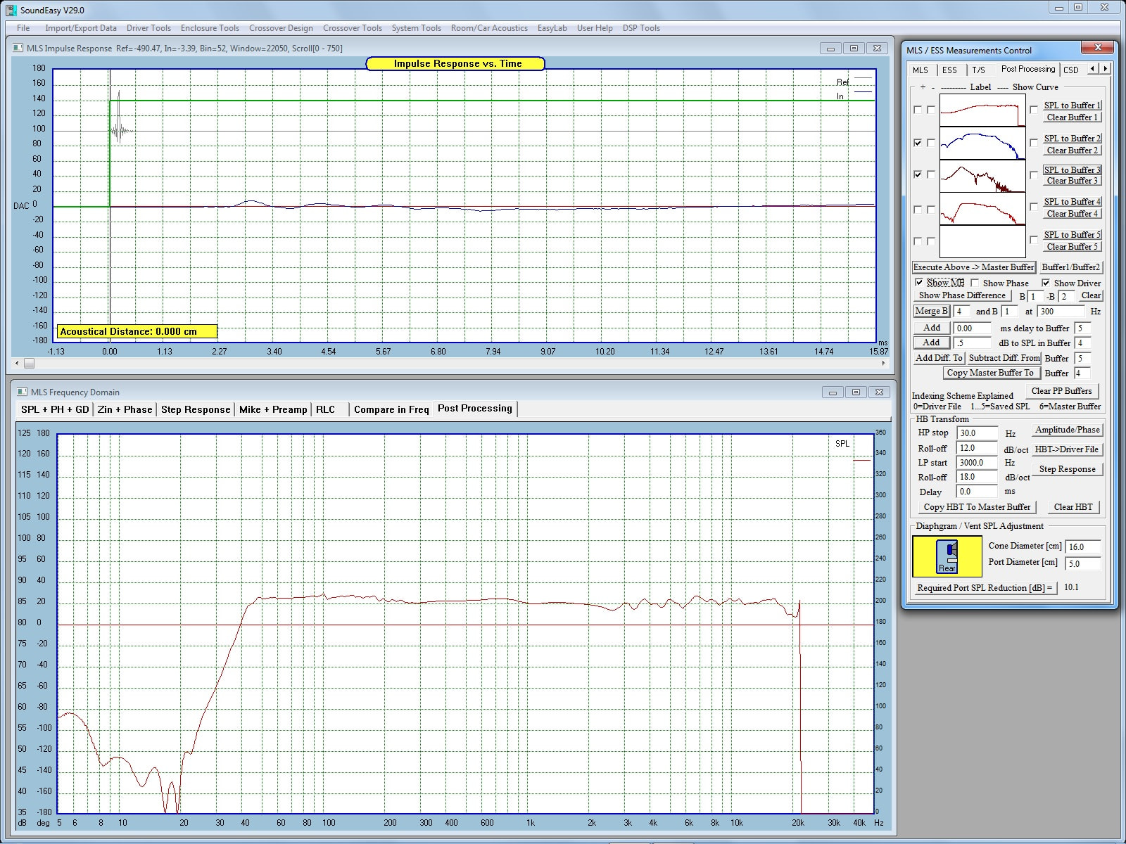 I next measured the tweeter FF response. You can see the effect of the crossover setting and I thought the response looked pretty good except for the dip around 3K.