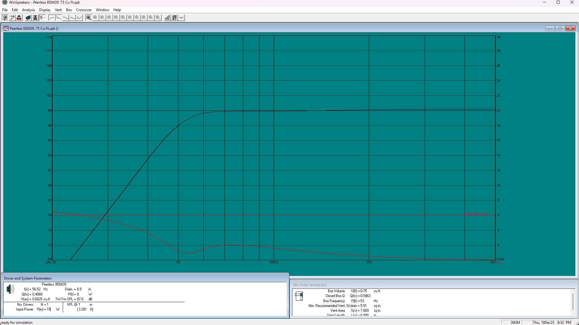 The Dactives (Dayton Audio Actives) were the speakers I brought to IowaDIY 2025. These used vintage (2003) Peerless HDS 850439 6.5" woofers and SB Acoustics SB19ST-C000-4 tweeters powered with a Dayton Audio KABD-430 board. This board features a 4 x 30-watt amp, DSP and Bluetooth. The cabinet is .7 cu. ft. with a 3” port tuned to 48Hz.