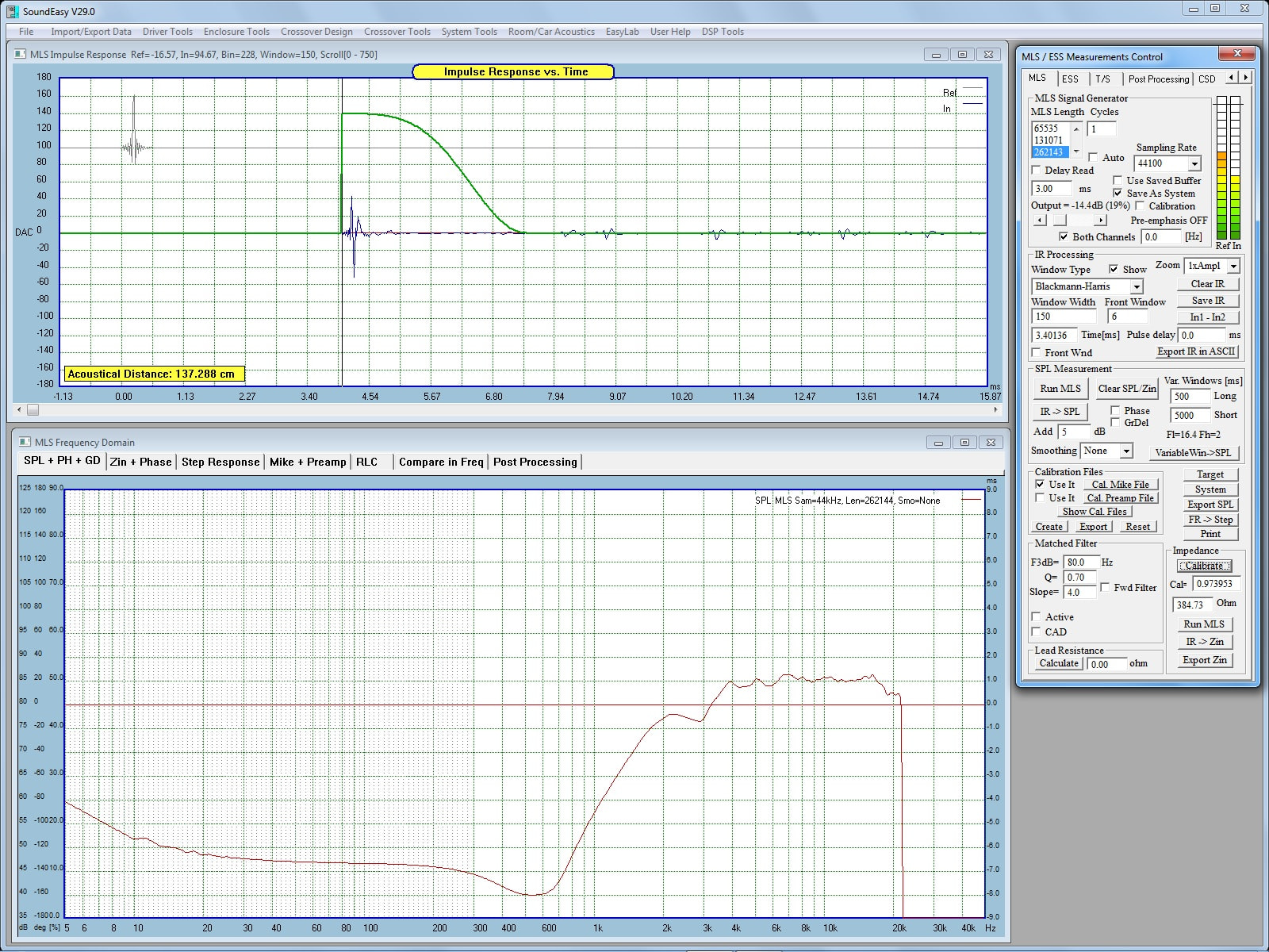 The first thing I set was the crossover point. In my case I chose 24 dB/Oct LR @ 2500Hz. You open the settings window by clicking on the little blue square in the “Crossover Control” box. When I opened the crossover control it was set for a 3000 Hz crossover using Linkwitz Riley 24.