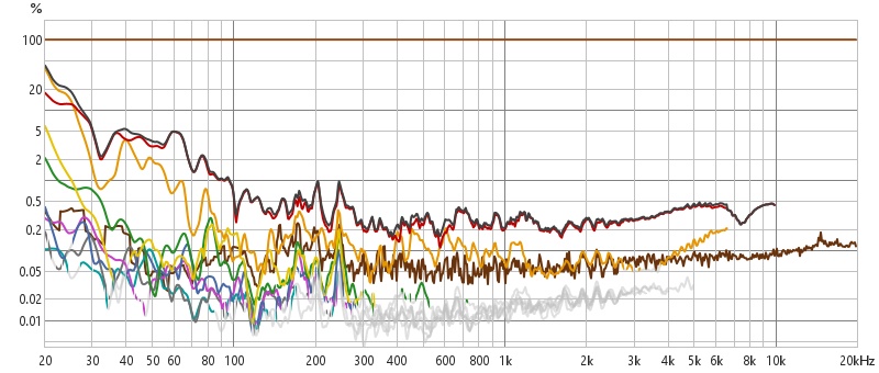 Previous measurements were of the “left” speaker, these are of the “right” speaker. Both speakers exhibit the same distortion. I tried holding it down to see if it was singing but honestly every time I tried there was no change in the odd order but higher levels of even order. I must not hold very steady. I could try zip ties to secure it next (haven’t had time forthat)