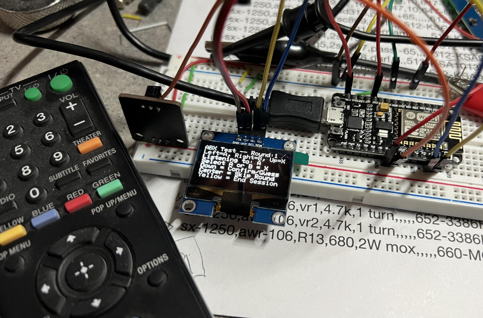 Exactly right on the hardware side. I started with an Arduino Nano clone and that was fine for the basic A/B switcher. But ChatGPT eventually determined it didn’t have enough memory to hold all the setup & variables for the ABX tester. I had bought an ESP board by mistake some time ago and only yesterday learned they work with the Arduino IDE and have more features than I’ll need for this project. I wanted a larger OLED, so I got a 2.4” SSD1309 delivered this morning. I changed it to I2C, but I’m currently having issues getting the right library to load for that display.