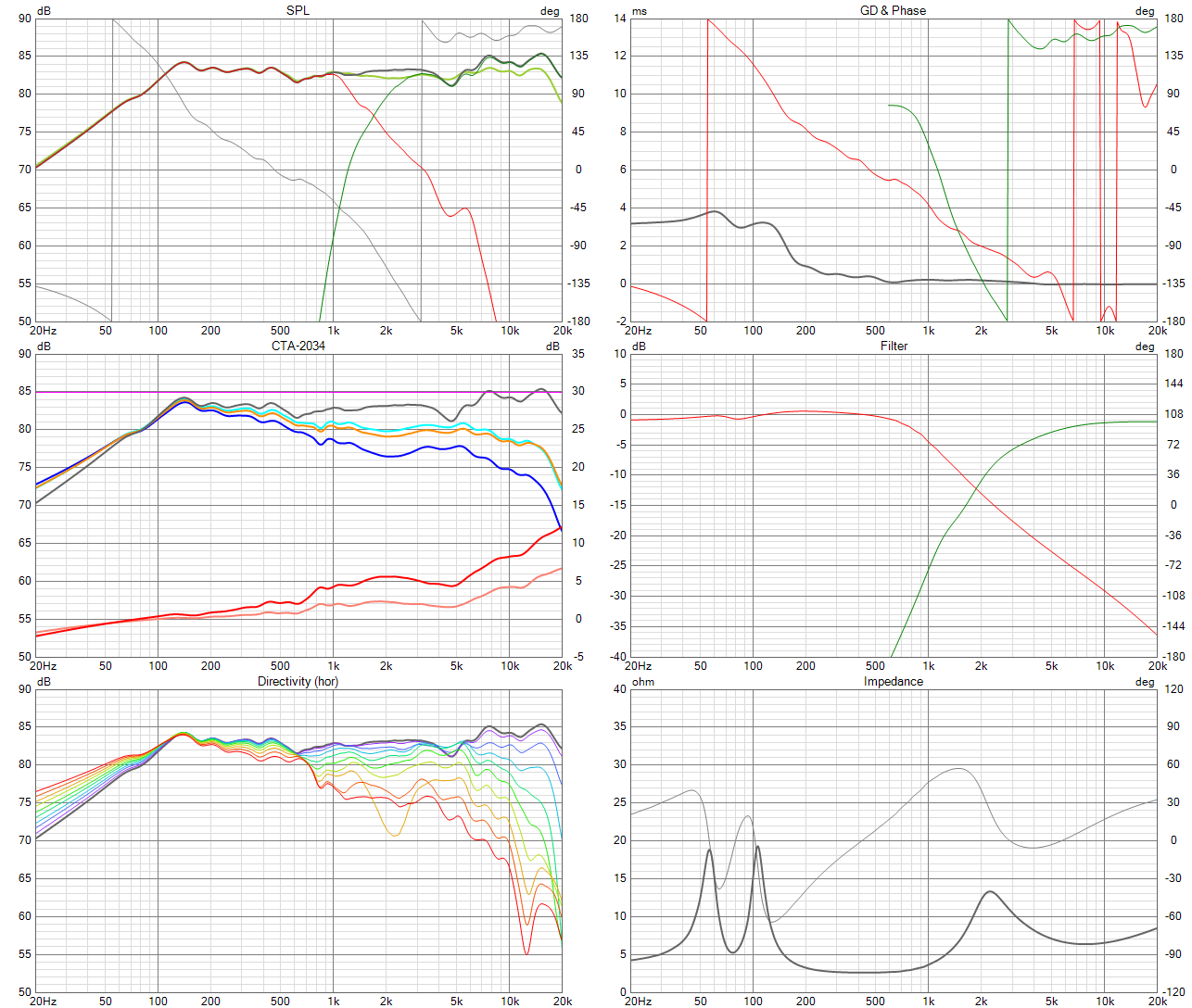 I wasn’t able to take full anechoic measurements of the speaker, as my coworker was using the camber for, well, actual work things. I plan to bring them in at some point to do a proper CTA 2034 measurement of the completed speaker.
