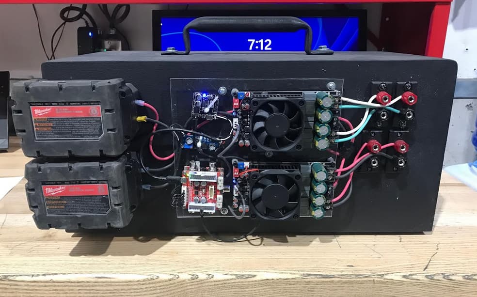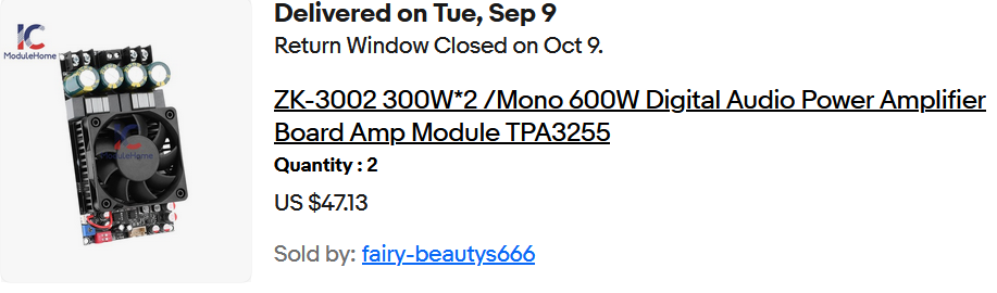 The first amp board was a 3channel tpa3255 board w/bt. Should have worked great, but the built in woofer crossover/independent volume control didn’t pan out for this application. Ordered two plain tpa3255 boards. 18v-50v, 2x300w@4ohm chinese watts.