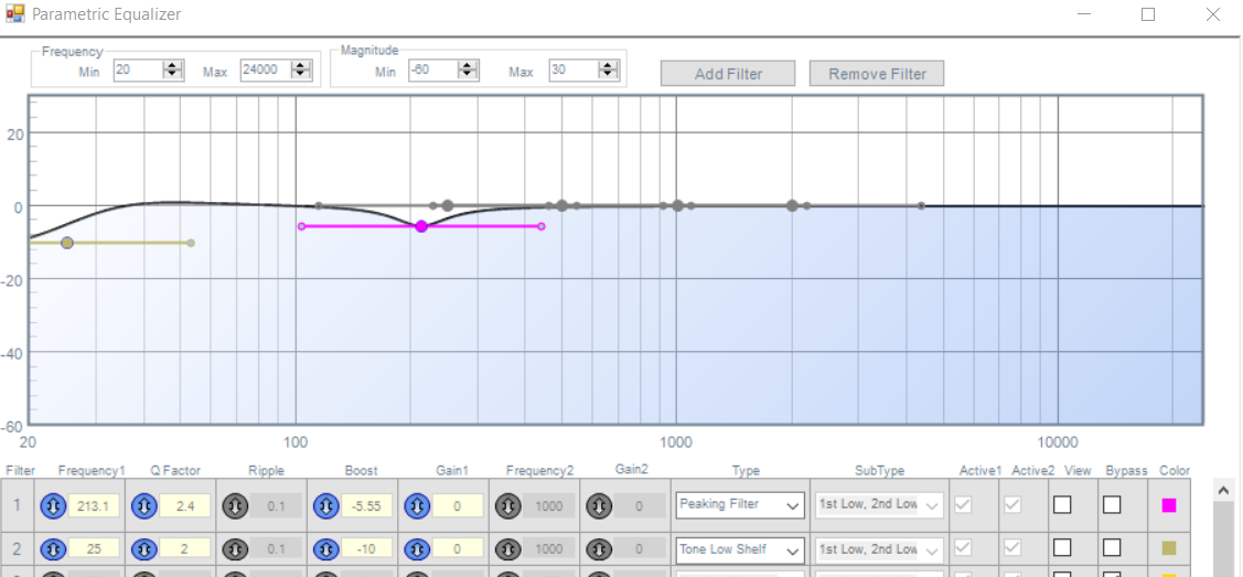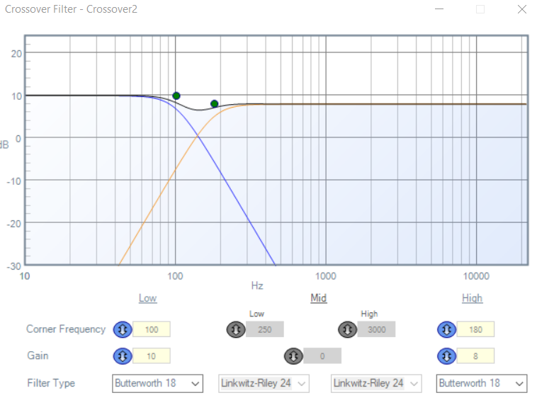 Little bit of eq. Dropped the very bottom out of the equation for more power handling and pulled a hump down around 200hz. Left the top end alone as it sounds good in actual use at work.