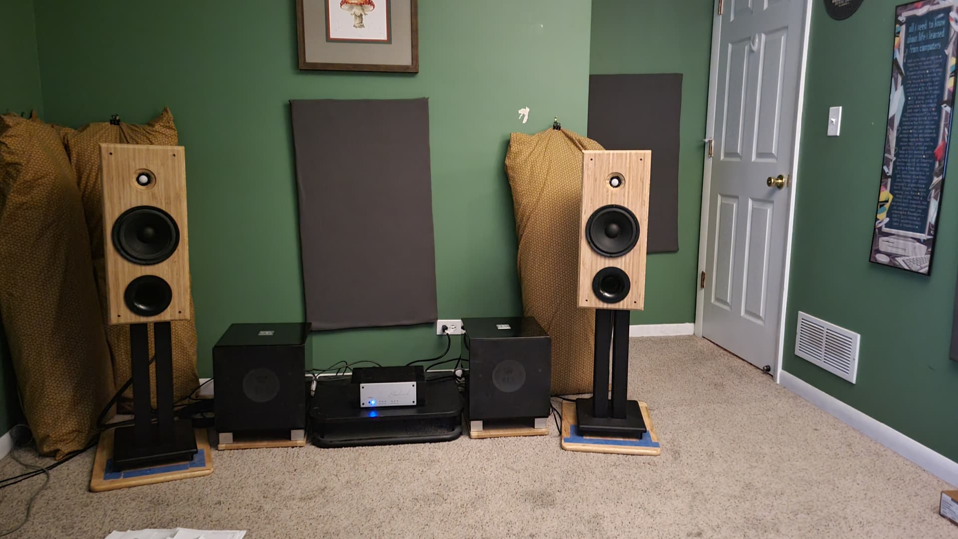 My wife won one of the raffle prizes (2nd person pulled, I seem to remember) - picked up a matched pair of Transducer Labs MG-26A tweeters. What I made with them (just made the face board (1st time wood working) and had the 1 cubic foot PE pre-finished cabinets.
